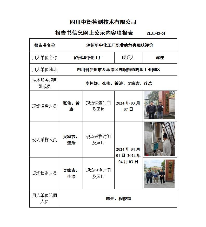 泸州华中化工厂职业病危害现状评价