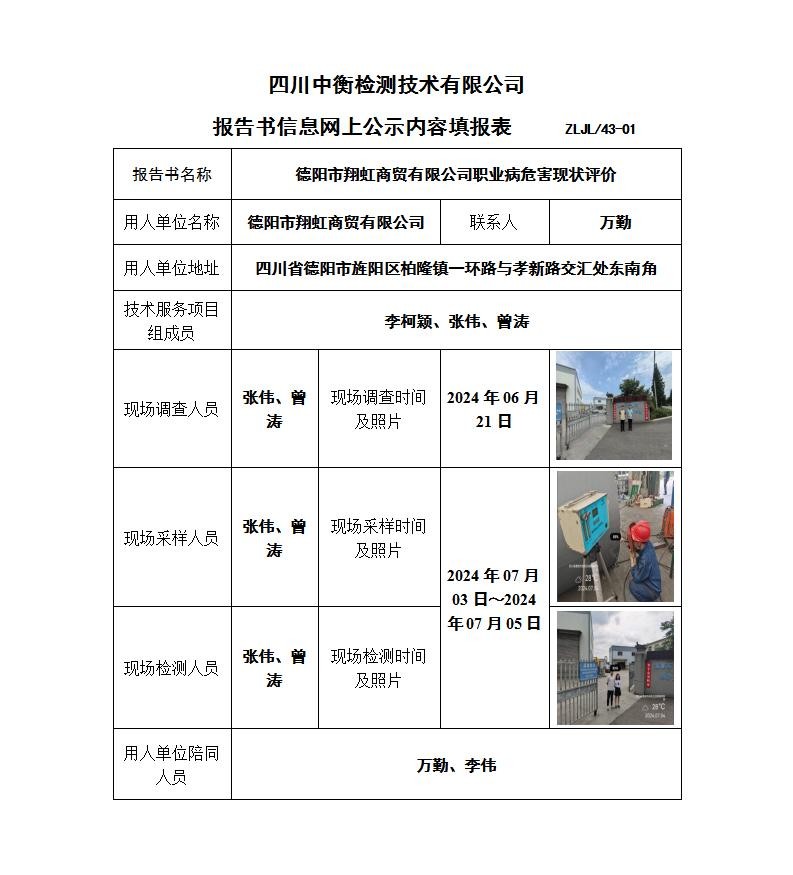 德阳市翔虹商贸有限公司职业病危害现状评价