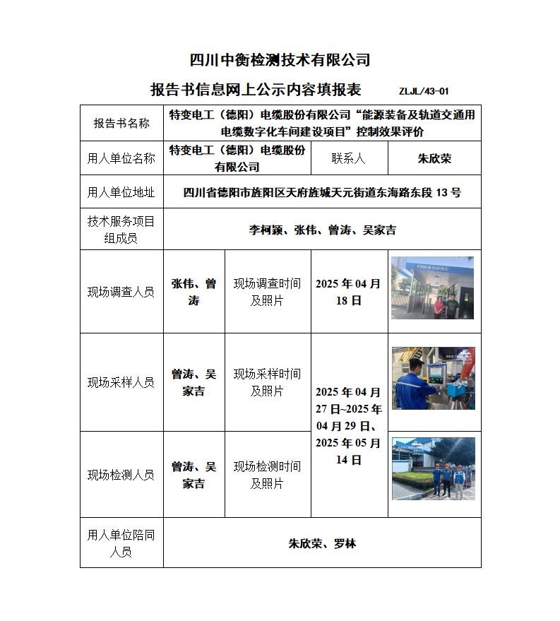 特变电工(德阳)电缆股份有限公司“能源装备及轨道交通用电缆数字化车间建设项目”控制效果评价