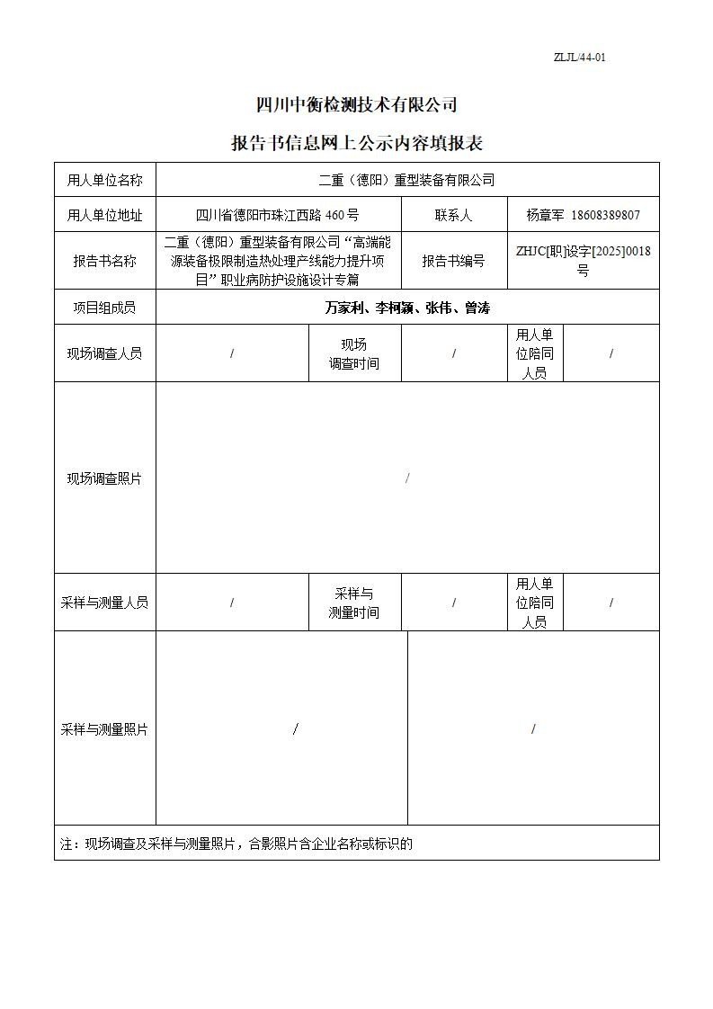 二重(德阳)重型装备有限公司“高端能源装备极限制造热处理产线能力提升项目”职业病防护设施设计